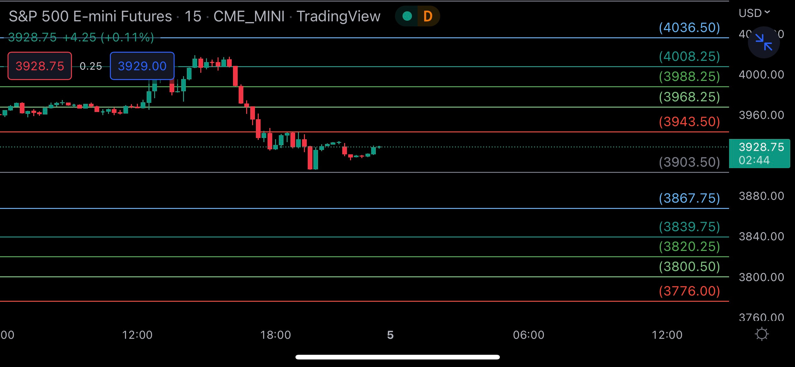 هناك العديد من الأعدادات المحتملة على عدة مؤشرات و أسهم و التي تم عرضها في الأقسام أدناه و سوف أقوم بتحديث هذه الاعدادات على مدار الأسبوع مع تغير السوق في نشرات اضافية مع إضافة بعض الاعدادات لعدة أسهم اخرى مع تحديث ES$ و SPX$
